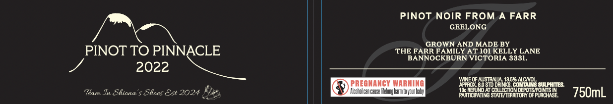 If you have attended either of our days in 2024 or 2025, you will most likely be familiar with our ‘Pinot to Pinnacle’ wine, made from what we regard as the best fruit from the ‘Cote’ vineyard. There is 1 special barrel of this wine, with the sole purpose of donating 100% of proceeds from this particular wine to charity, donated by the Farr Family. We chose this fruit because it is both seductive and delicious, a wine where you throw the cork away as soon as you open, because there isn’t much chance you will be needing to put it back in the bottle!